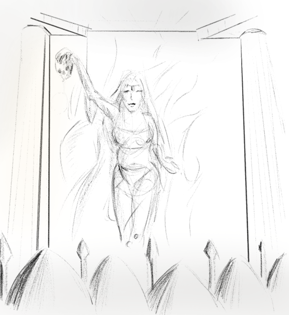 With a wave of her hand, she cut the gaurds response short. After this gesture ,which kept both men silent and watching, she stood up and began to pace the room in thought. Though naked and bare before them, she showed no sign of shame, but instead held a superior confidence in her womanly figure and posture. With each step of her bare feet on the marble floor, her expression, which in reaction to the news had been ragefu, slowly melted into a pridful satisfaction that blazed behind her eyes.